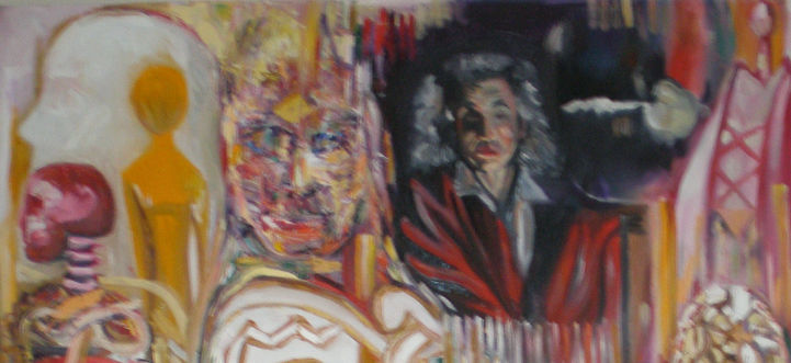 This series is called Journey to Abstraction and is the first I painted after giving up my day job. It represents a painted collage of figures from art history calculated to indicate the different modes and manifestations of the human figure from rock paintings to abstraction. It involved a contemplation of the decline of the representation of the human figure in Western painting.